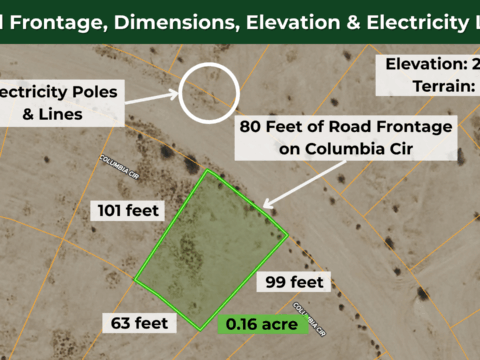 This 0.16-acre residential lot in Roll, Arizona, includes street power and water lines ready for connection. You’re in the MHS zoning district, which allows manufactured homes, mobile homes, and site-built homes with no minimum square footage requirements.