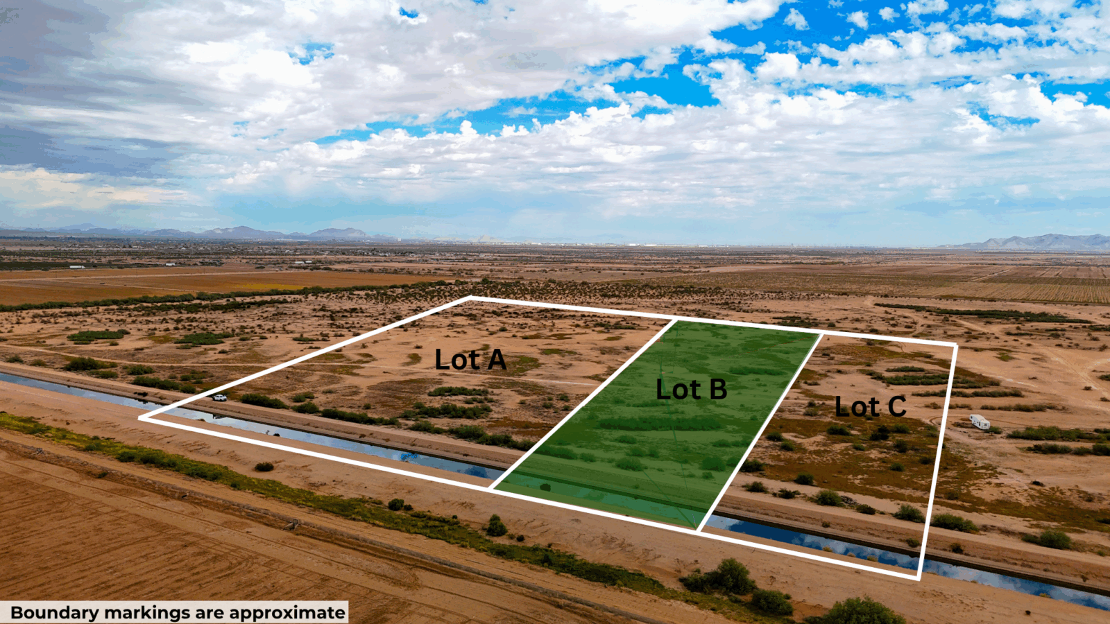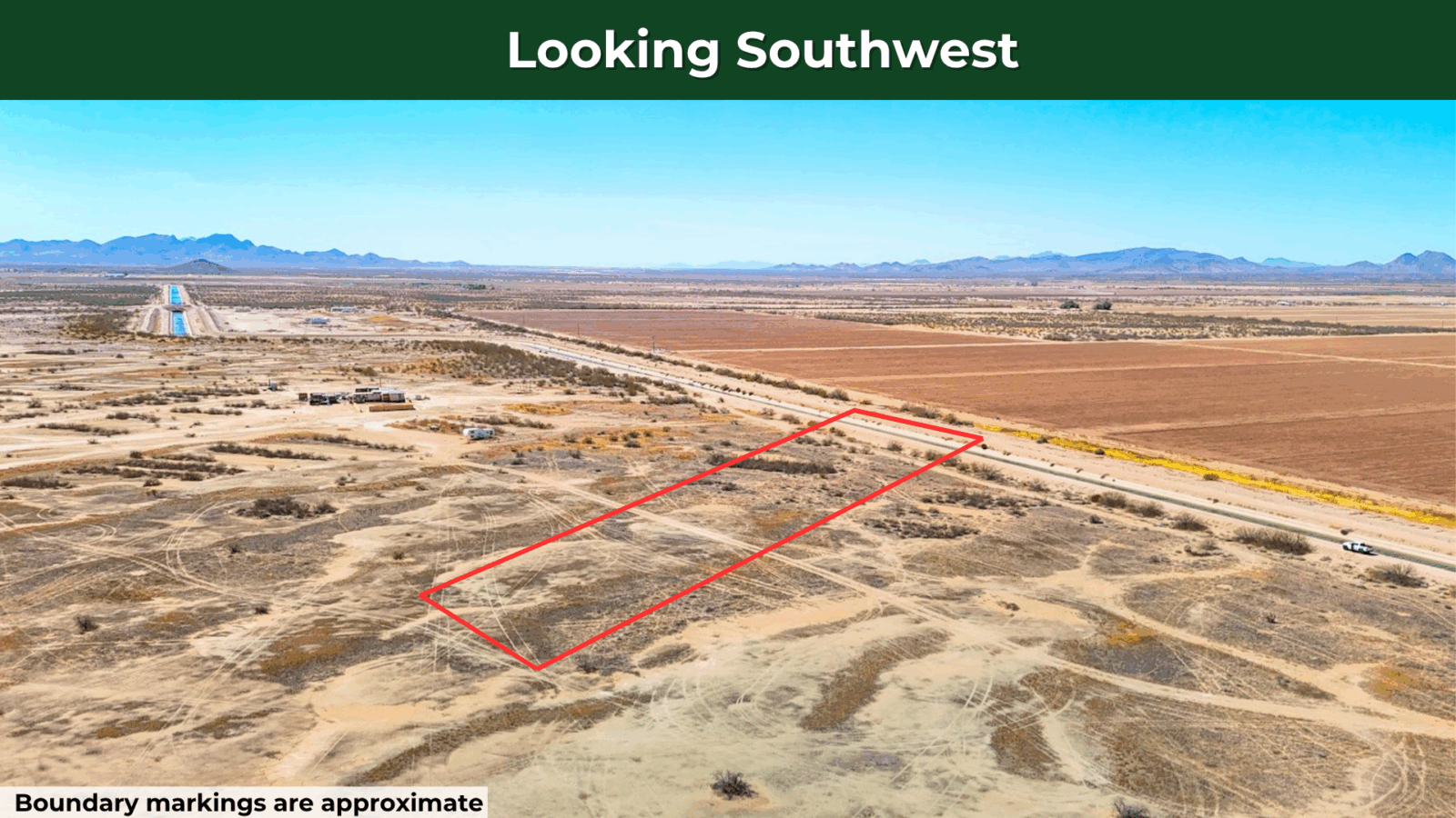 This 2.5-acre parcel on Midway Road puts you in Pinal County’s General Rural zone, where you can build a site-built home, manufactured home, or mobile home with no minimum square footage requirements. Legal and physical access is through the dirt roads that run along the irrigation canal. The property is off-grid, requiring well water and septic systems, with the nearest power connection about 1,150 feet north along the street.