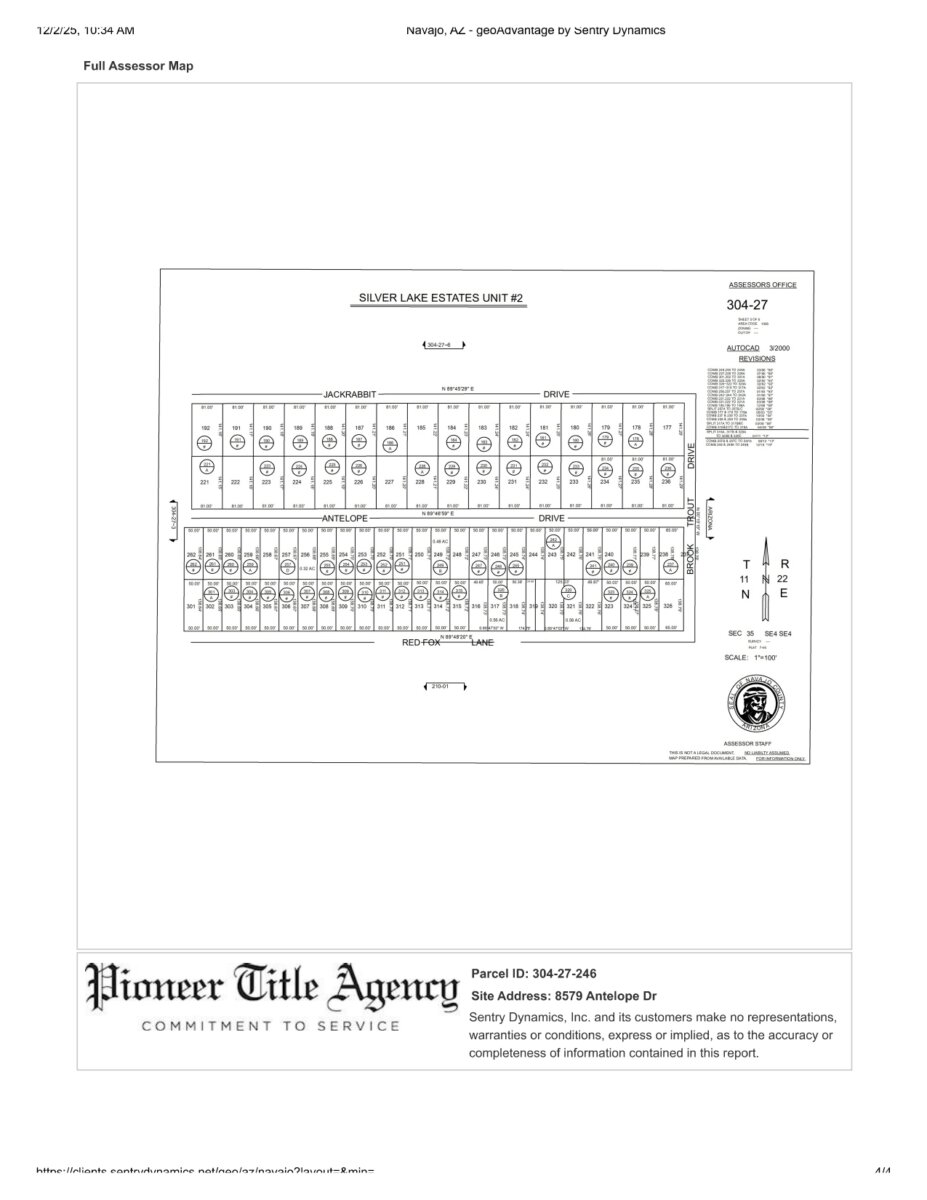 Legal Description: Lot 246, SILVER LAKE ESTATES NO. 2, according to Book 7 of Maps, page 46, records of Navajo County, Arizona