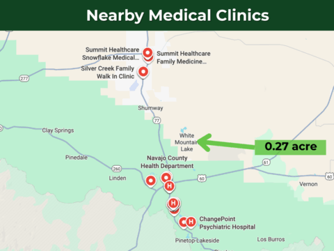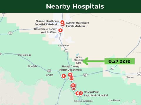This lot is conveniently situated just 11 minutes from State Route 77, ensuring effortless commuting, while Show Low Downtown is just 20 minutes away. It offers a wide range of necessities and services – including schools, hospitals, grocery stores, gas stations, Walmart, Safeway, McDonald’s, Dollar General, O’Reilly Auto Parts, pharmacies, and regional airports. Phoenix Sky Harbor International Airport is a 3-hour drive from the property.