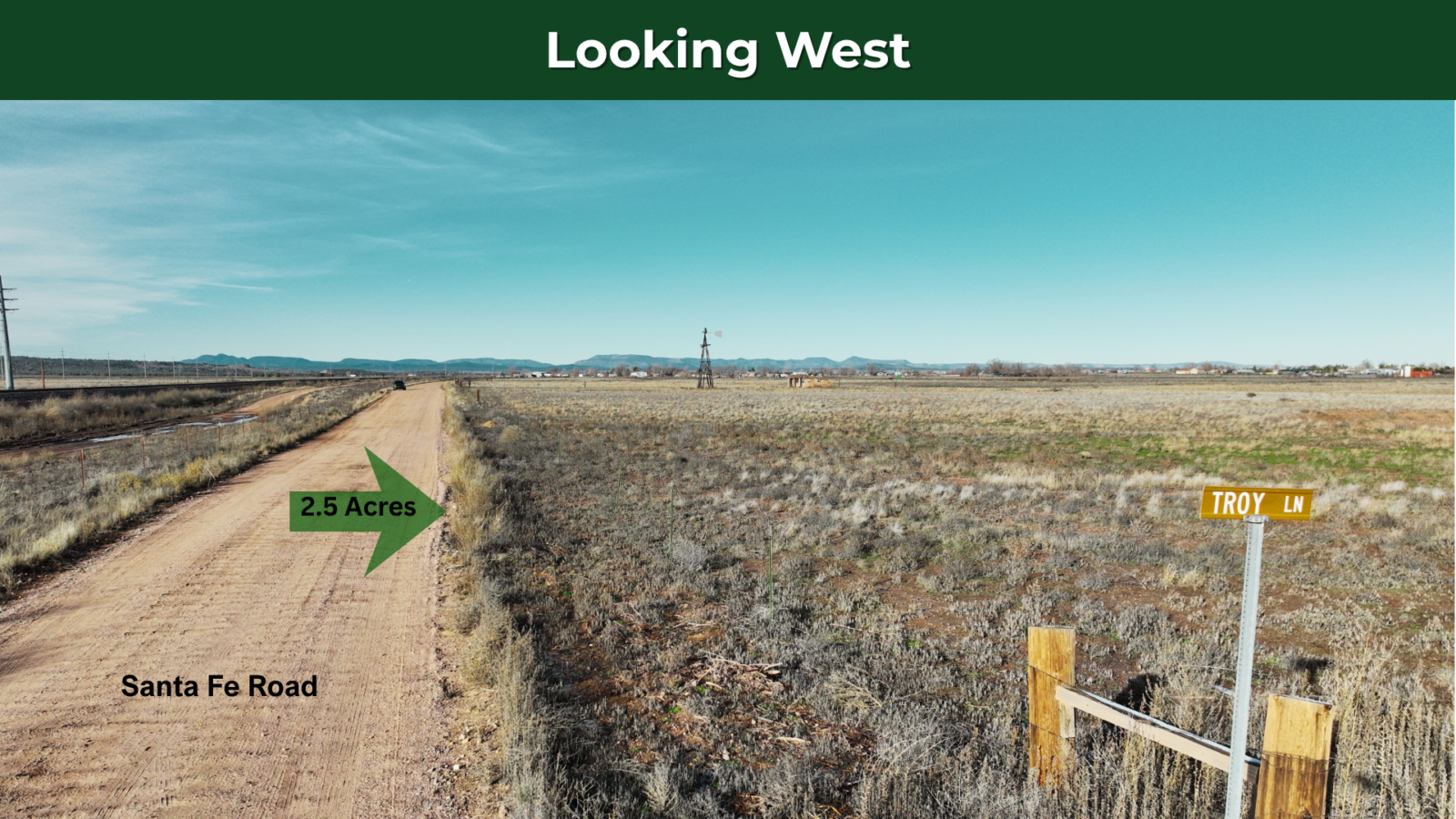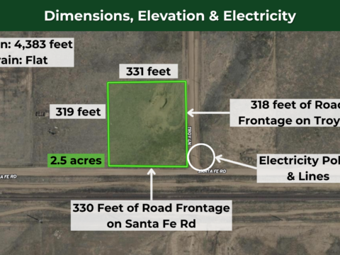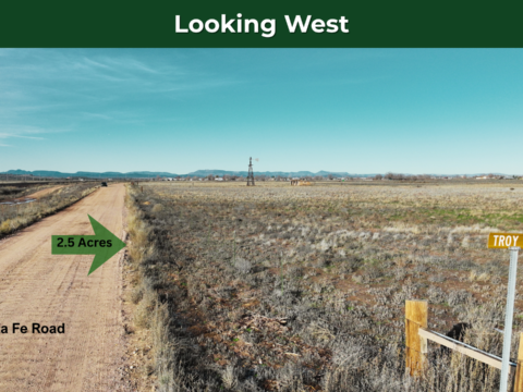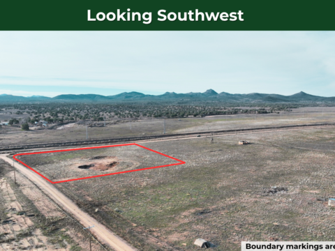 This 2.5-acre corner lot in Paulden offers level terrain with power already running across Santa Fe Rd. You can camp in an RV for up to 10 days, three times per year, use it for a hobby farm with livestock or horses, or build a new site-built home.