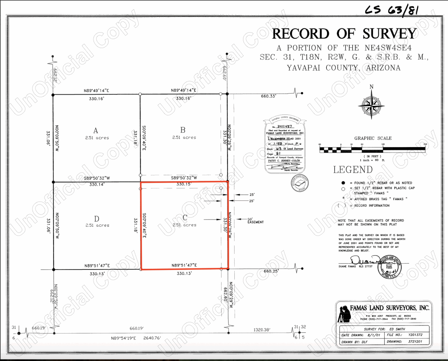 Legal Description: A portion of the South Half of the East half of the Southwest Quarter of the Southeast Quarter of Section 31, Township 18 North, Range 2 West of the Gila and Salt River Base and Meridian, Yavapai County, Arizona